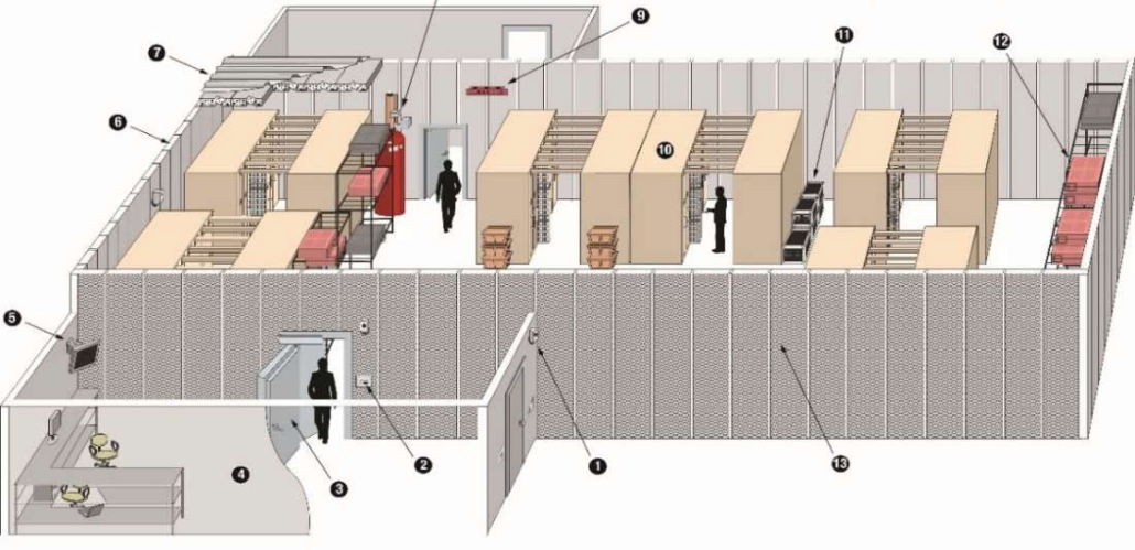 vault chamber, while maintaining a temperature below 125º F. even if temperature outside the vaulreach 2,000º F. Our vaults are fitted with, fire suppression units, Environmental monitoring device, CCTV, access control and Smart Cool HVAC with precisely control room temperature, humidity and air quality to ensure efficient, reliable, 24/7 operation of sensitive systems in data centres and other critical applications.